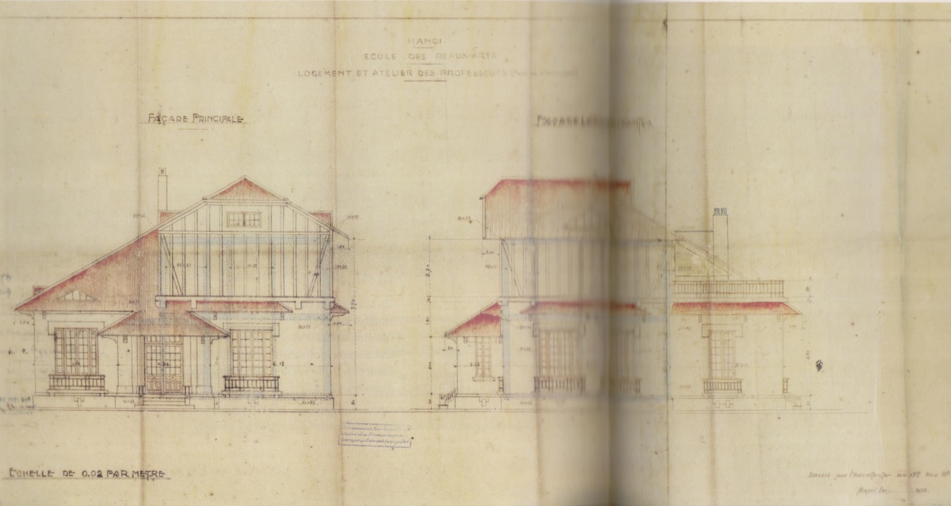 Hébergé, route mandarine, dans les anciens bâtiments de l’usine d’électricité de l’Exposition de 1902, l’Ecole est agrandie avec la construction d’une salle de conférences, un logement pour le directeur de l’école et un petit pavillon, comportant logement et atelier, destiné à l’artiste titulaire du Prix de l’Indochine. (3). Extrême-Asie, l’Ecole des beaux-Arts de l’Indochine – Sa création – Son objet – Son avenir, Docteur de Fénis, page 3 et suivantes, 01/1926.