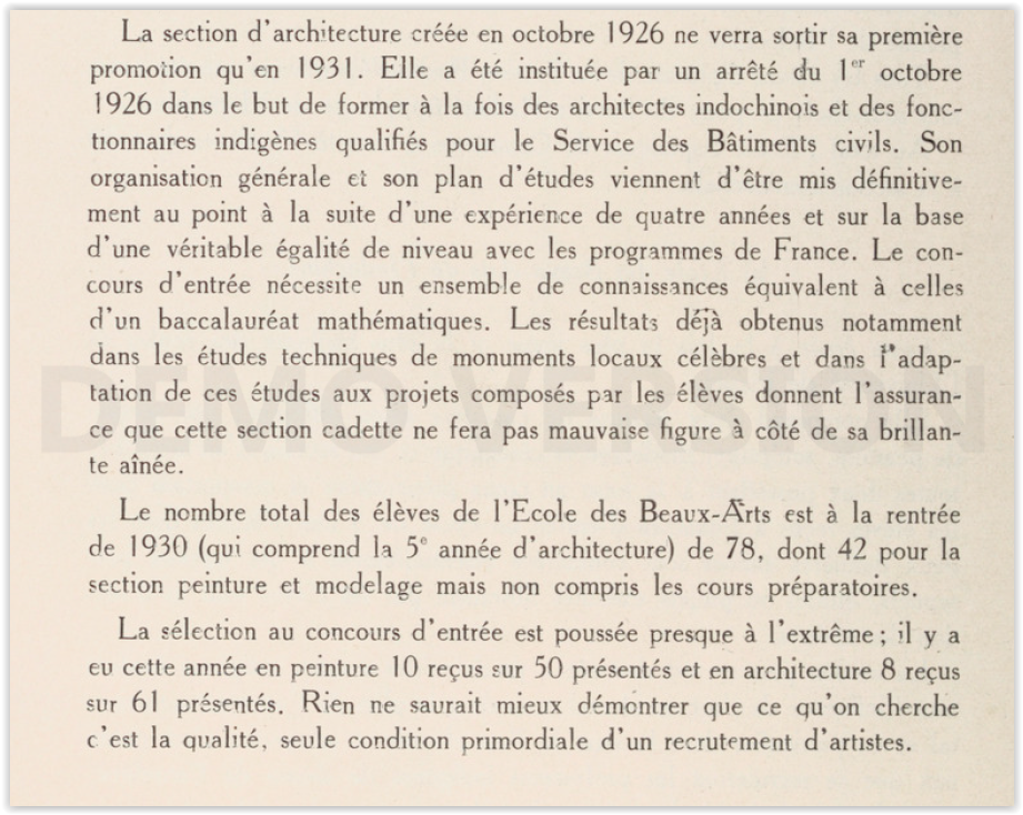 En 1925, le 19 mars, sont fixées les conditions du concours d’admission à l’Ecole des Beaux-Arts de l’Indochine. (5) Bulletin de l’Agence générale des colonies, 01/06/1925, p 994 & Bulletin administratif, Commissariat de la République française au Laos, pages 634-635, 01/10/1925.