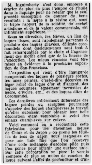 En 1939, en février, dans le hall de l’Université d’Indochine, l’Ecole expose des œuvres de laque, de ses anciens élèves. (29) L’Ere nouvelle, 07/02/1939.